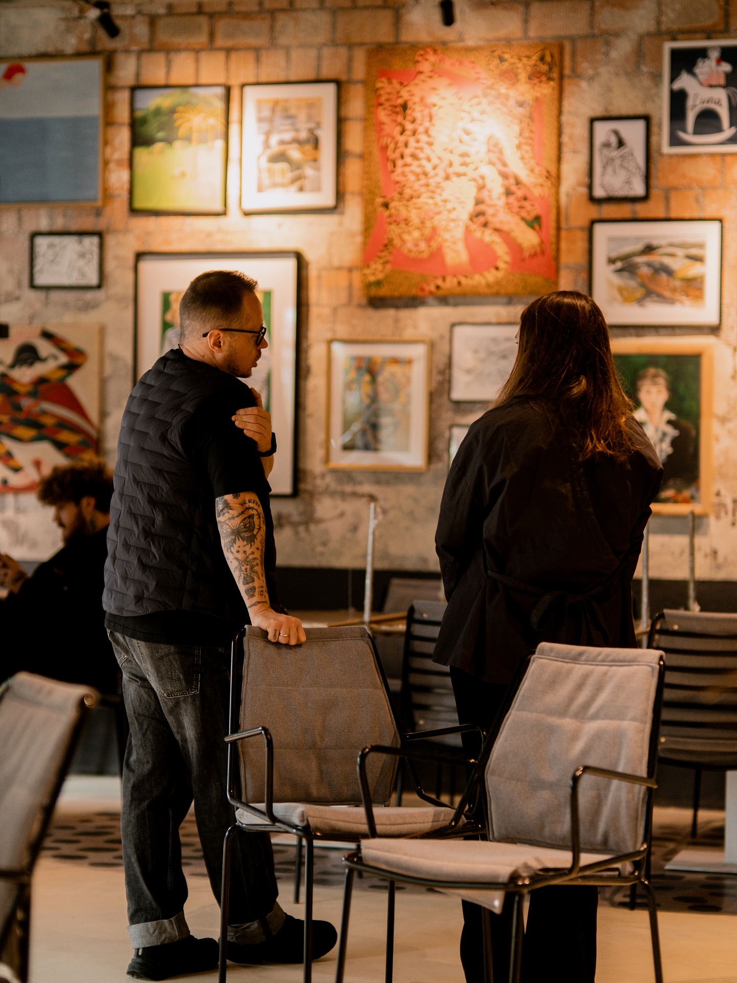 Інтерʼєр оформлений роботами художниці Ганни Лопушанської, яка відчула вайб закладу і перенесла його у кольори, рельєфи та образи — навіть на фото це виглядає як окремий привід для відвідування! Ганна також розробила фірмовий стиль, стаканчики, футболки.