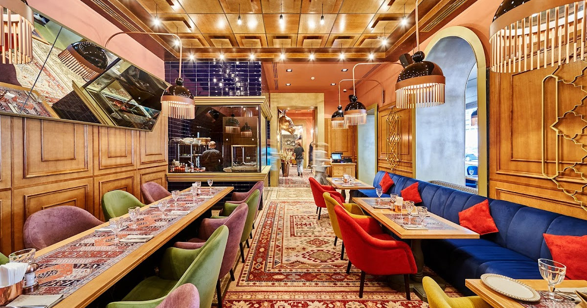Це місце, де оживає Схід. Перські килими, дерев’яні меблі та приглушене світло. У повітрі — аромат спецій, диму від мангалу й щойно спеченого хліба. Узбецький плов, люля‑кебаб, хачапурі, шурпа, долма, чебуреки — приготовані на відкритому вогні або з дров’яним ароматом.